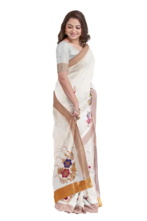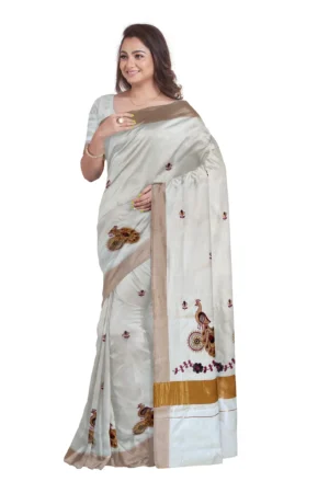 1. Kerala Cotton Kasavu: The saree is made from high-quality Kerala cotton Kasavu fabric.