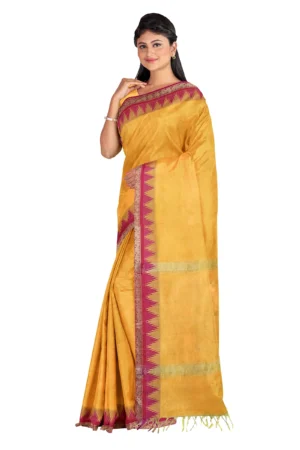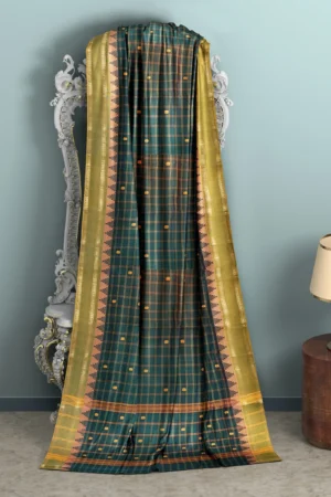 3. Temple and Rudraksha Border: Unique blend of thread-woven and zari design.