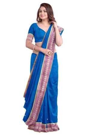 – Silver zaree putta & gold zari border: Adds metallic shine and traditional richness.