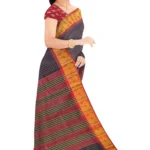 Crafted from premium Chettinad cotton fabric, this saree offers exceptional comfort and breathability. Chettinad cotton is highly valued for its lightweight texture, softness, and durability, making it ideal for everyday wear as well as special occasions. The breathable cotton fabric allows proper airflow, keeping you cool and comfortable even during long hours of wear. This makes it a preferred choice for women in warm regions like Tamil Nadu and Kerala.