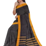 One of the most attractive highlights of this saree is its beautiful thread-woven border featuring a small temple design. The temple motif border is inspired by the traditional architecture of South Indian temples and is commonly used in handloom sarees to symbolize heritage and cultural richness. The finely woven temple border enhances the beauty of the navy blue base and adds a subtle yet striking traditional touch.
