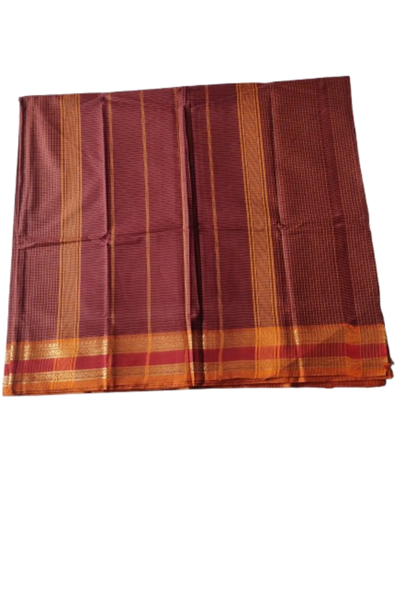 Chettinad Cotton Checked Saree Without Blouse ( Brown Colour)