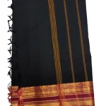 This stunning Chettinad cotton saree is a masterpiece of traditional Indian craftsmanship, featuring an attractive Kunjaram design that adds a touch of majesty to the overall look. The saree’s black color provides a dramatic backdrop for the intricate Rudraksha design zari border, which adds a level of sophistication and cultural heritage. The combination of the Kunjaram and Rudraksha designs creates a unique and eye-catching pattern that is sure to turn heads.
