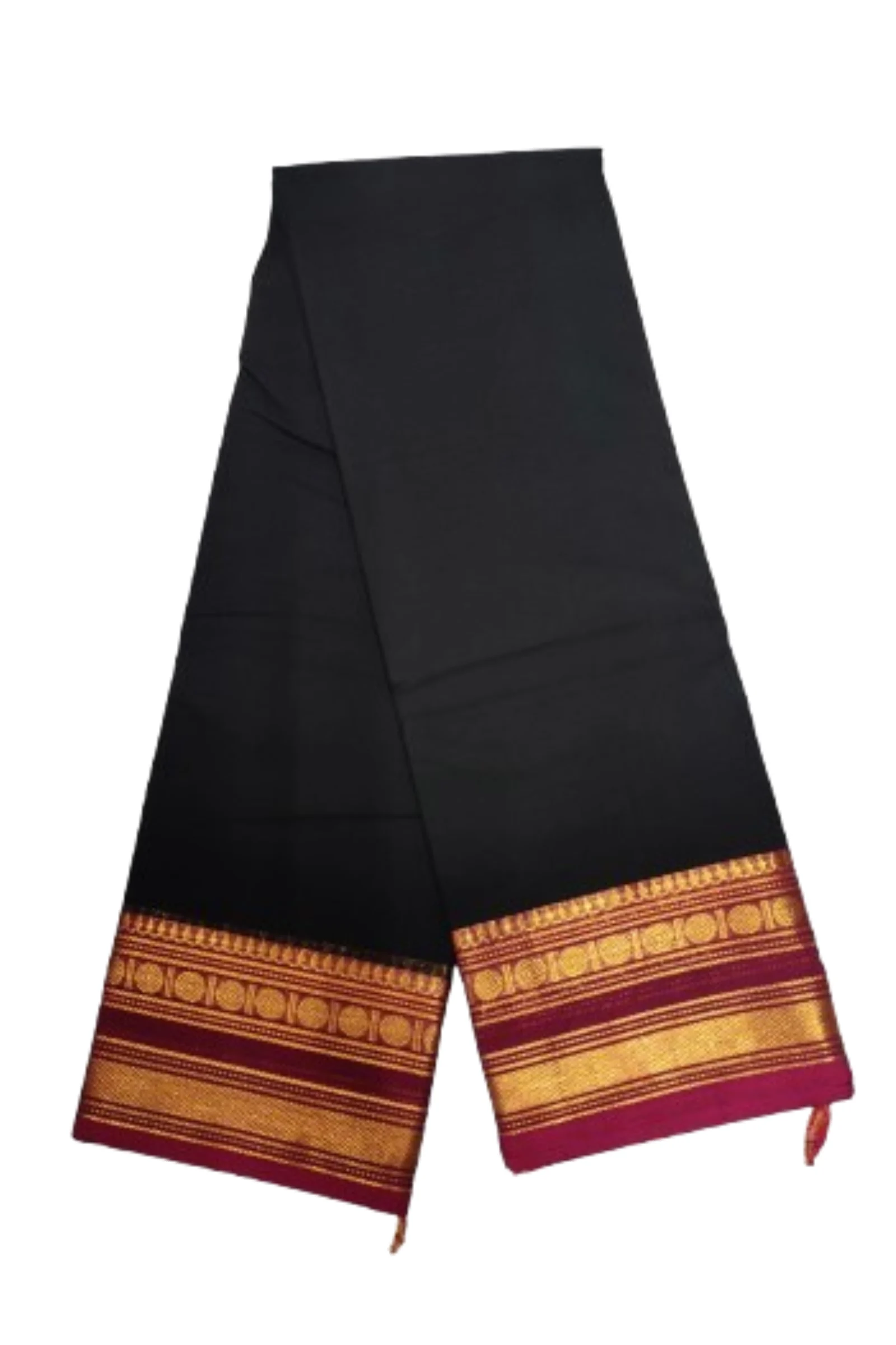 Chettinad Cotton Plain Saree With Running Blouse ( Black Colour)