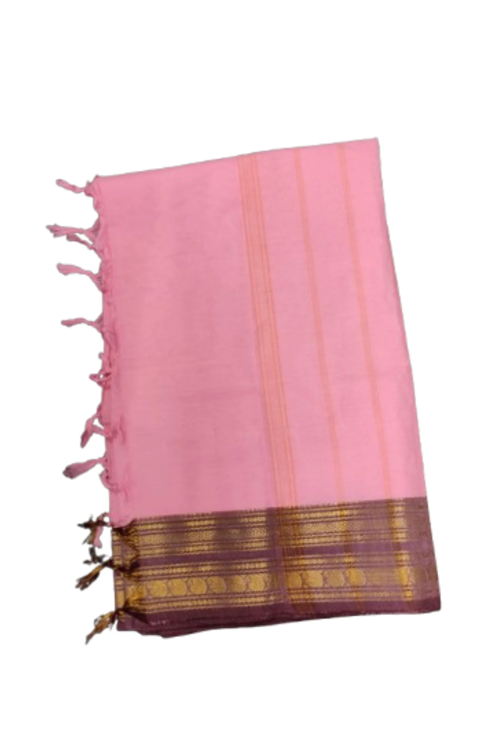 Chettinad Cotton Plain Saree With Running Blouse (Rose Colour)