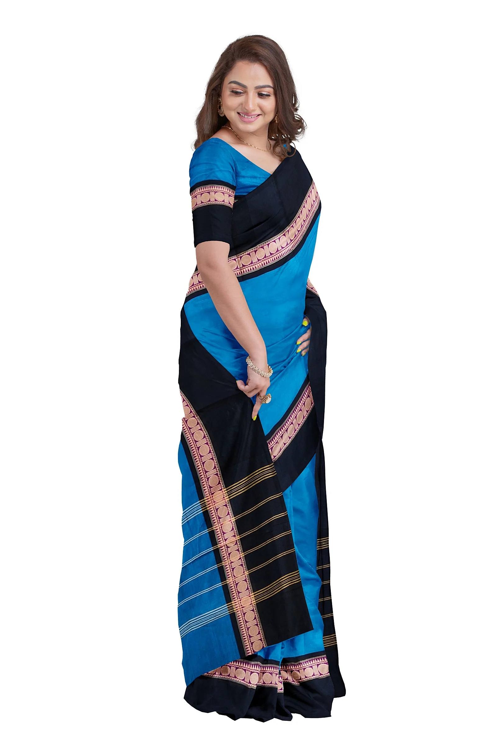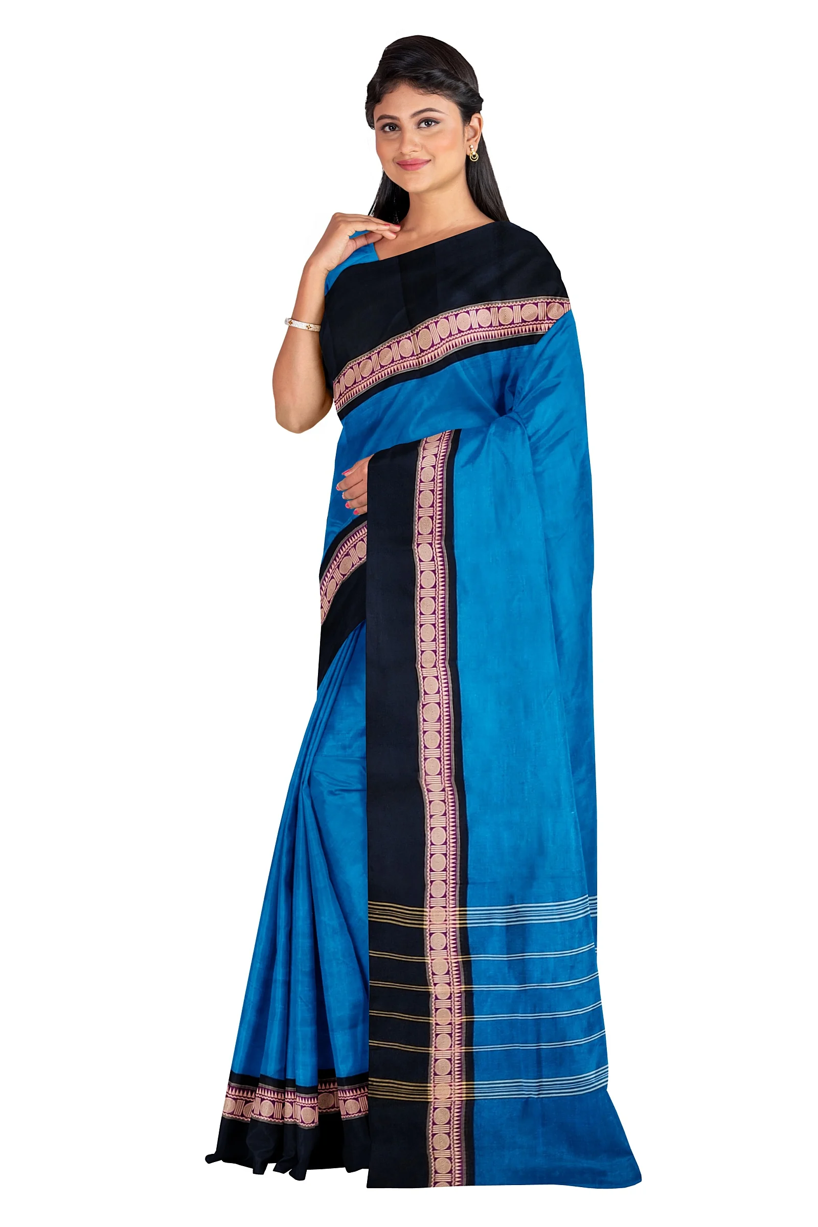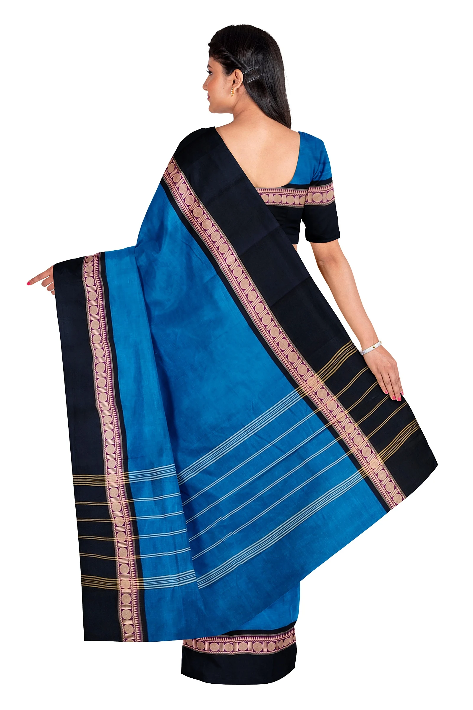 Chettinad Cotton Plain Saree Without Blouse(Blue Colour)