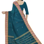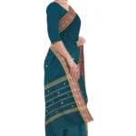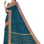 This saree comes in a beautiful peacock green colour, a shade that symbolizes freshness, elegance, and cultural richness. Peacock green is one of the most popular colours in traditional South Indian sarees because it provides a graceful and vibrant appearance. The deep green tone enhances the overall beauty of the saree and gives it a refined and stylish look that suits women of all ages.