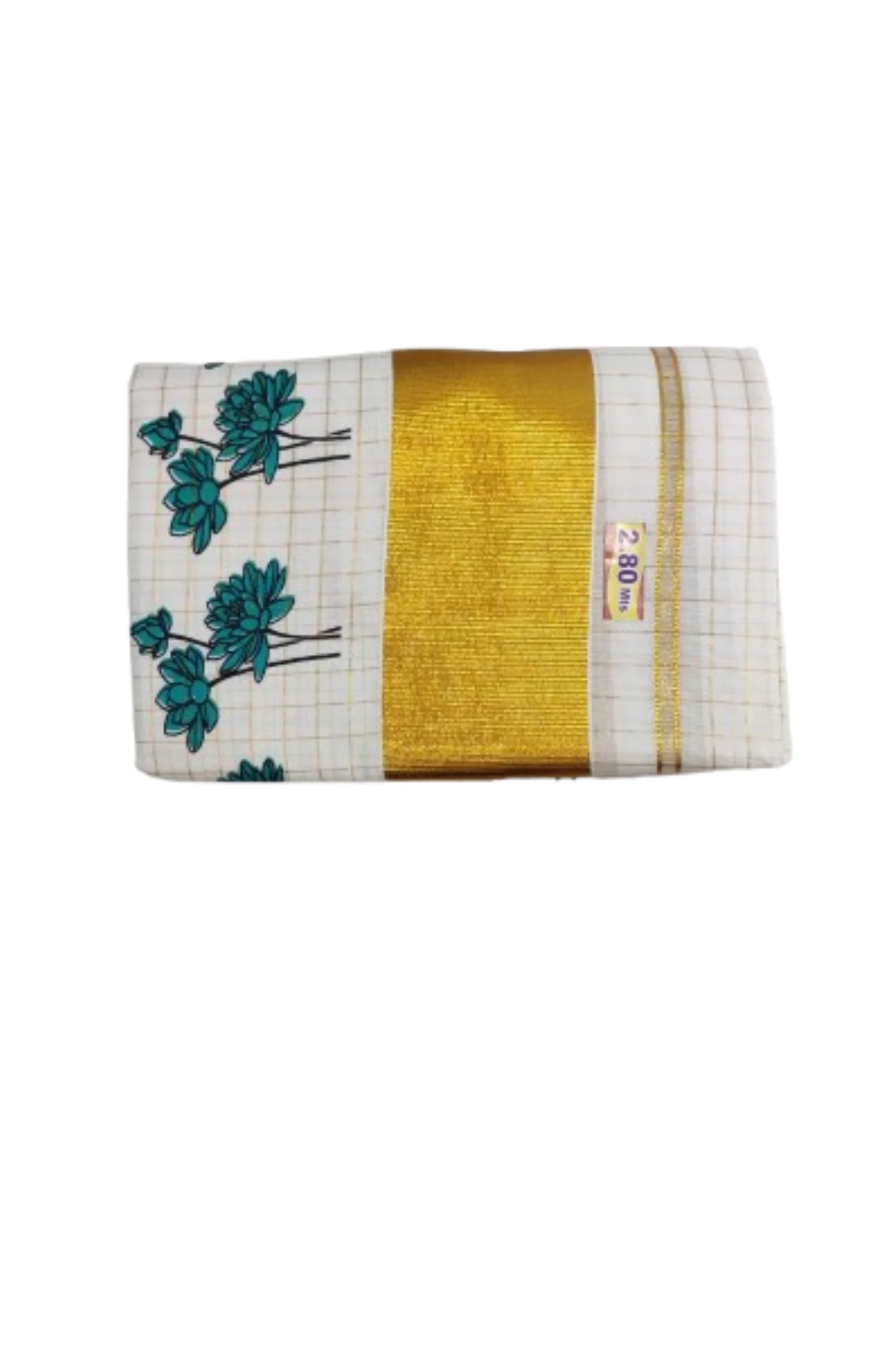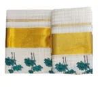 The Kerala Kasavu Cotton Checked Set Mundu is a quintessential embodiment of traditional Kerala elegance, perfect for those who cherish cultural heritage with a touch of sophistication. Made from soft, breathable cotton, this set mundu features charming checked patterns, subtly accentuated with delicate flower prints that add a fresh, vibrant feel. What elevates it to a level of grandeur is the gorgeous golden zari border, a hallmark of Kasavu craftsmanship, symbolizing grace and festivity. Typically measuring a length of 2.80 meters, this attire is ideal for Onam, Vishu, or any special occasion where tradition meets style. The simplicity of the cotton fabric ensures comfort, while the golden touches bring a regal sheen, making it a versatile choice for both casual temple visits and grand celebrations. Whether draped as a mundu or paired with a blouse, the Kerala Kasavu exudes an effortless charm, connecting wearers to Kerala’s rich textile legacy. Its lightweight fabric keeps you comfortable all day, and the intricate designs make it a lovely gift for loved ones. A true celebration of Kerala’s artistry