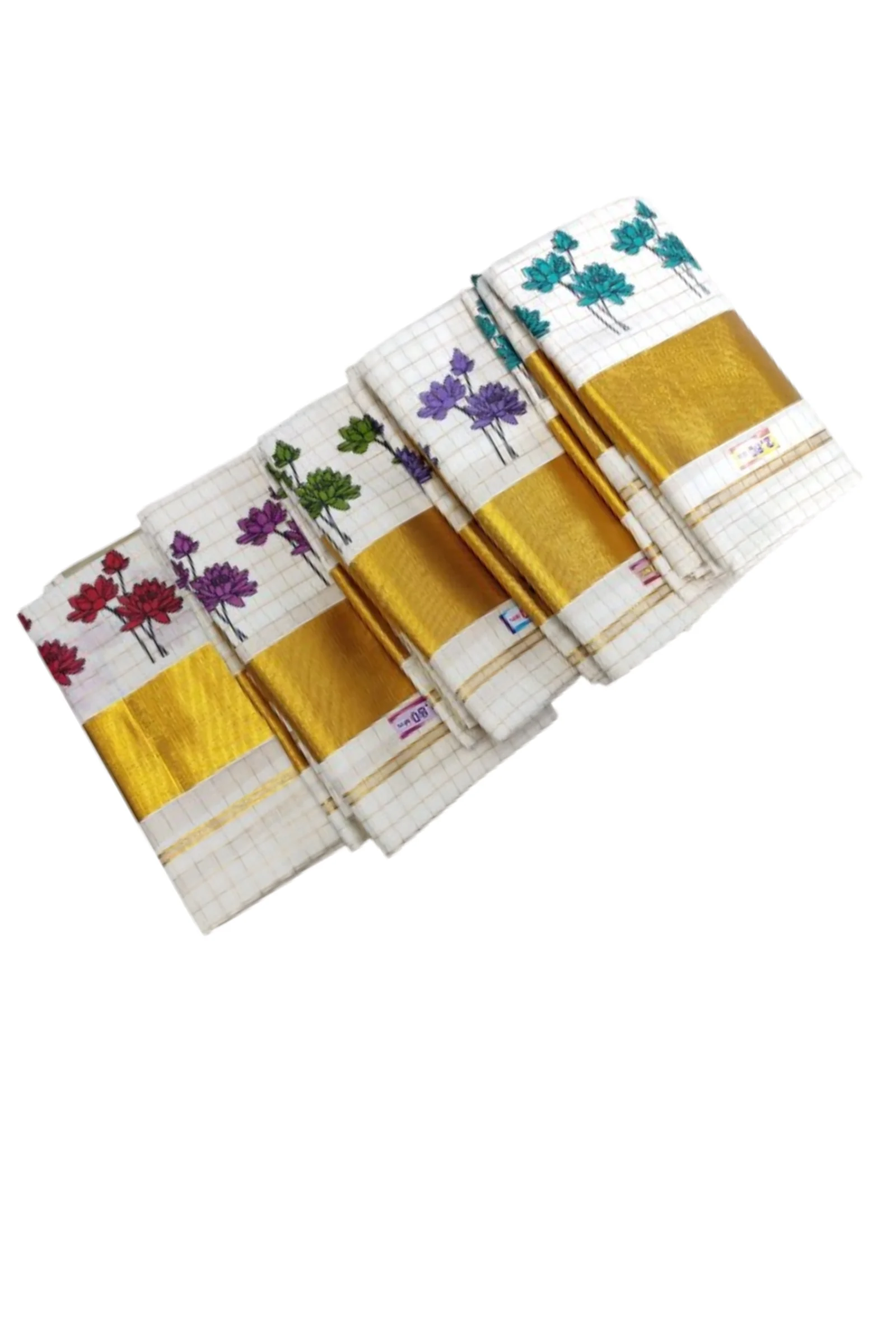 The Kerala Kasavu Cotton Checked Set Mundu is a quintessential embodiment of traditional Kerala elegance, perfect for those who cherish cultural heritage with a touch of sophistication. Made from soft, breathable cotton, this set mundu features charming checked patterns, subtly accentuated with delicate flower prints that add a fresh, vibrant feel. What elevates it to a level of grandeur is the gorgeous golden zari border, a hallmark of Kasavu craftsmanship, symbolizing grace and festivity. Typically measuring a length of 2.80 meters, this attire is ideal for Onam, Vishu, or any special occasion where tradition meets style. The simplicity of the cotton fabric ensures comfort, while the golden touches bring a regal sheen, making it a versatile choice for both casual temple visits and grand celebrations. Whether draped as a mundu or paired with a blouse, the Kerala Kasavu exudes an effortless charm, connecting wearers to Kerala’s rich textile legacy. Its lightweight fabric keeps you comfortable all day, and the intricate designs make it a lovely gift for loved ones. A true celebration of Kerala’s artistry!