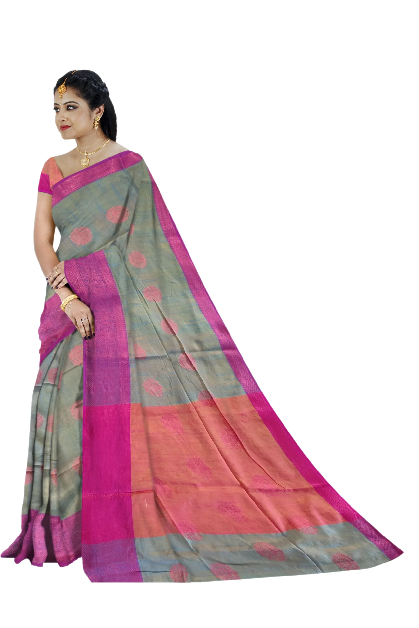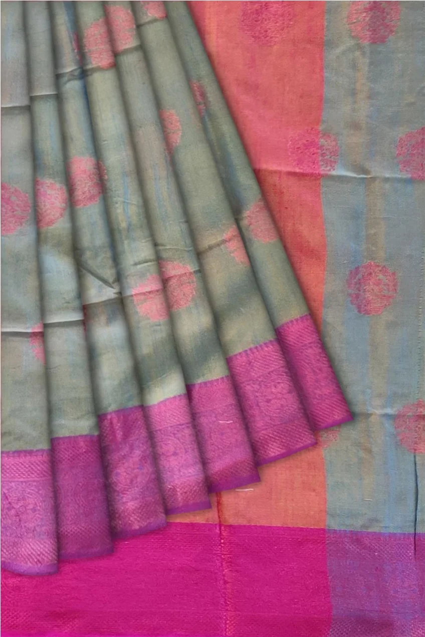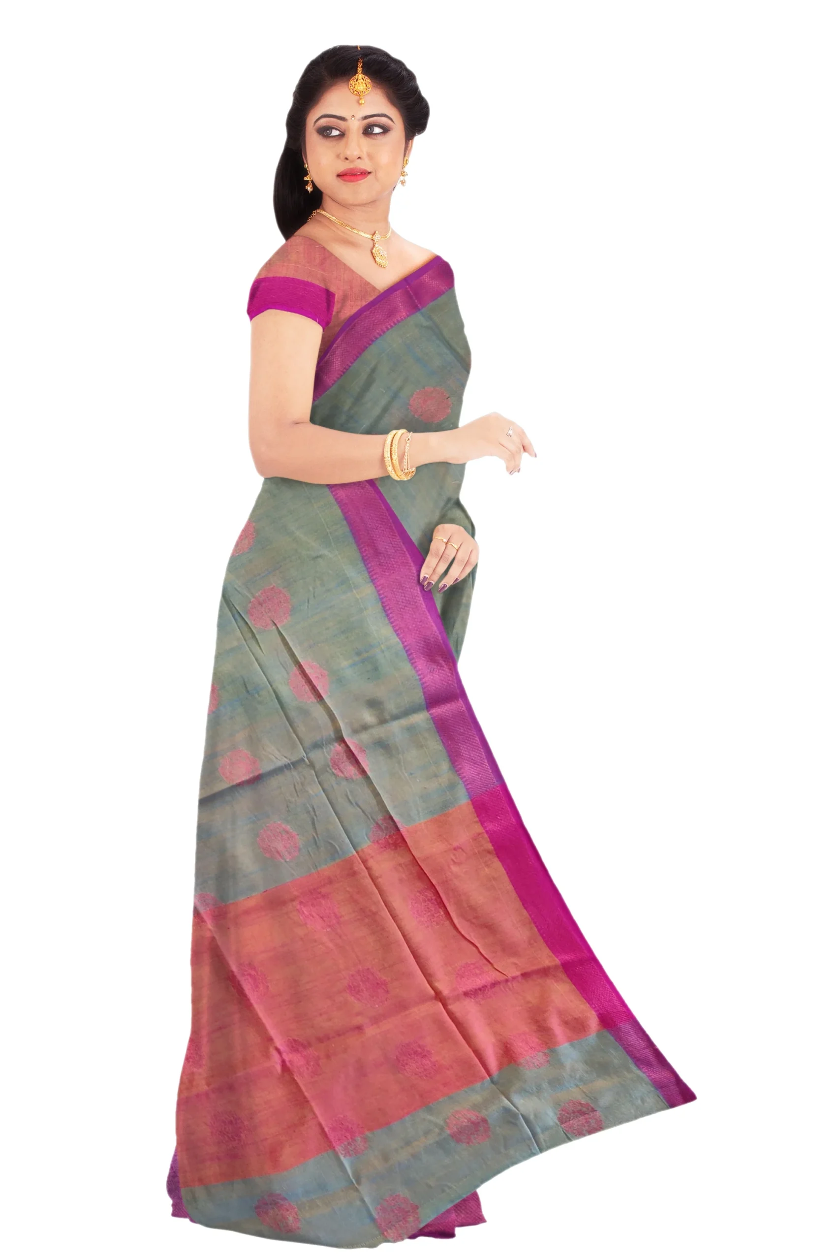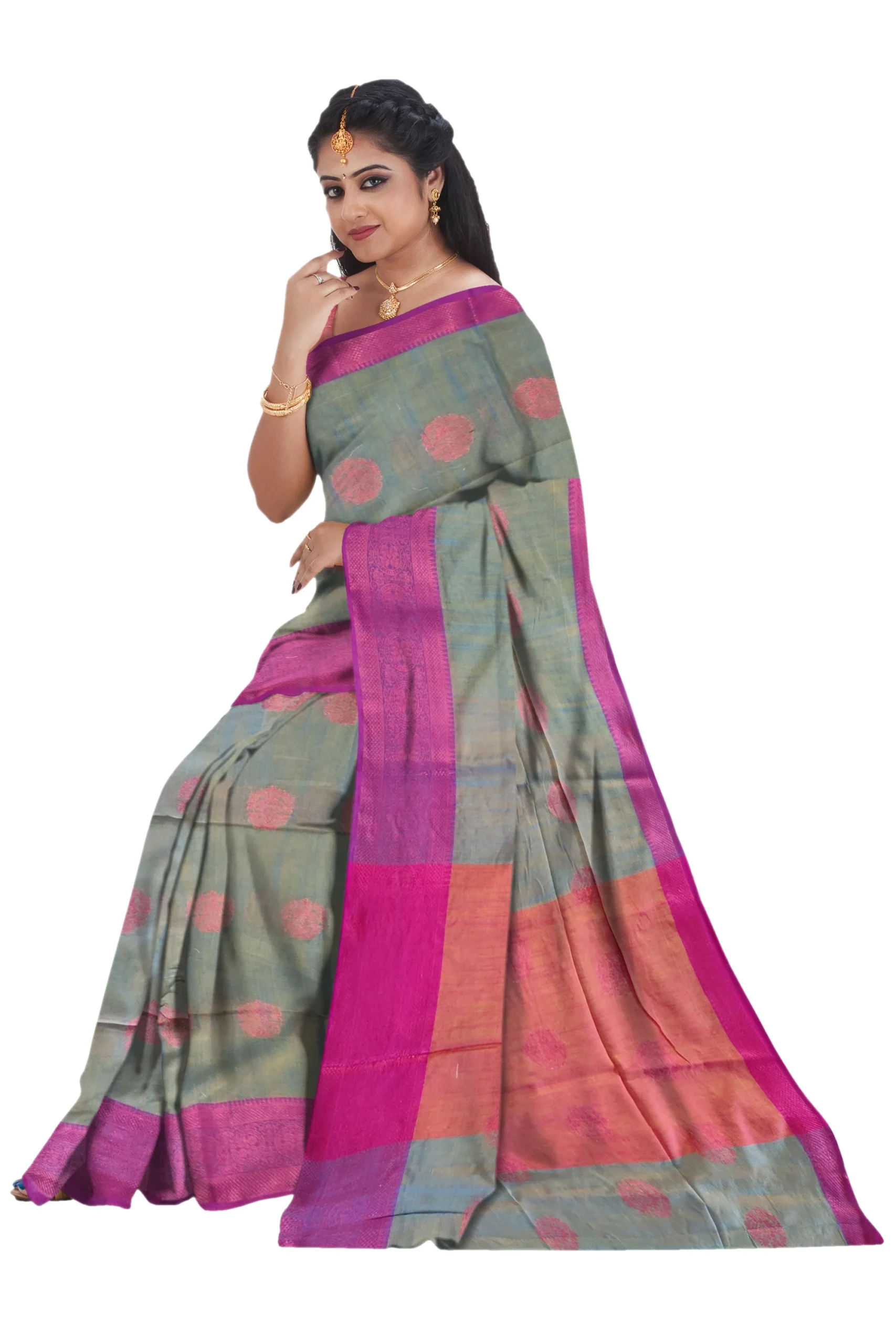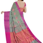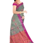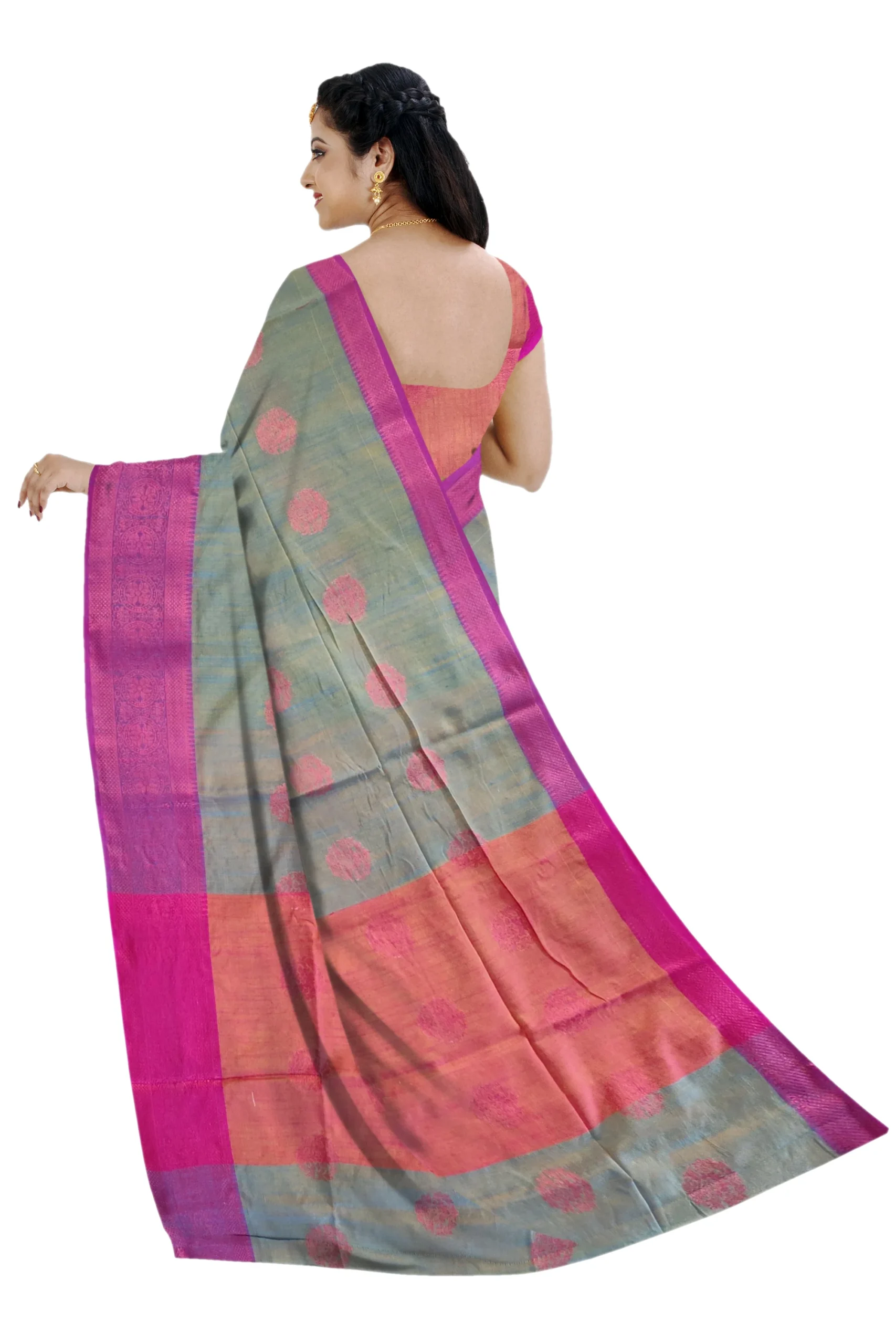 One of the standout features of this saree is its beautiful putta design woven across the body. These small decorative motifs are evenly placed throughout the saree, adding a touch of traditional craftsmanship. The putta pattern gives the saree a rich and textured look while maintaining the simplicity that cotton sarees are known for.