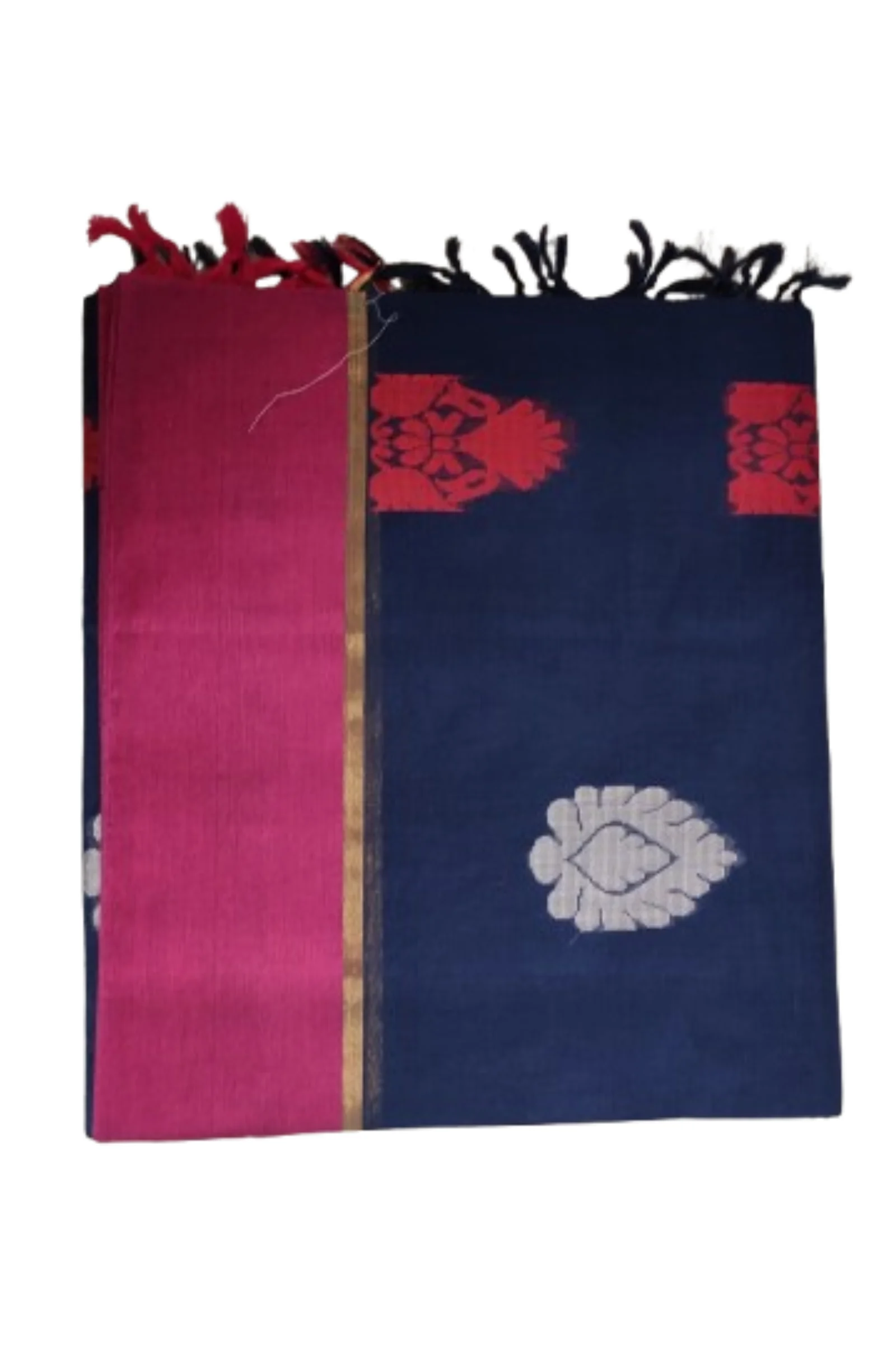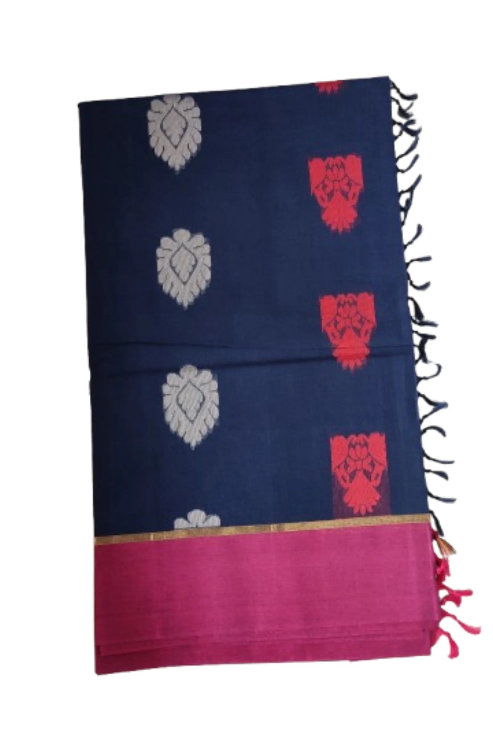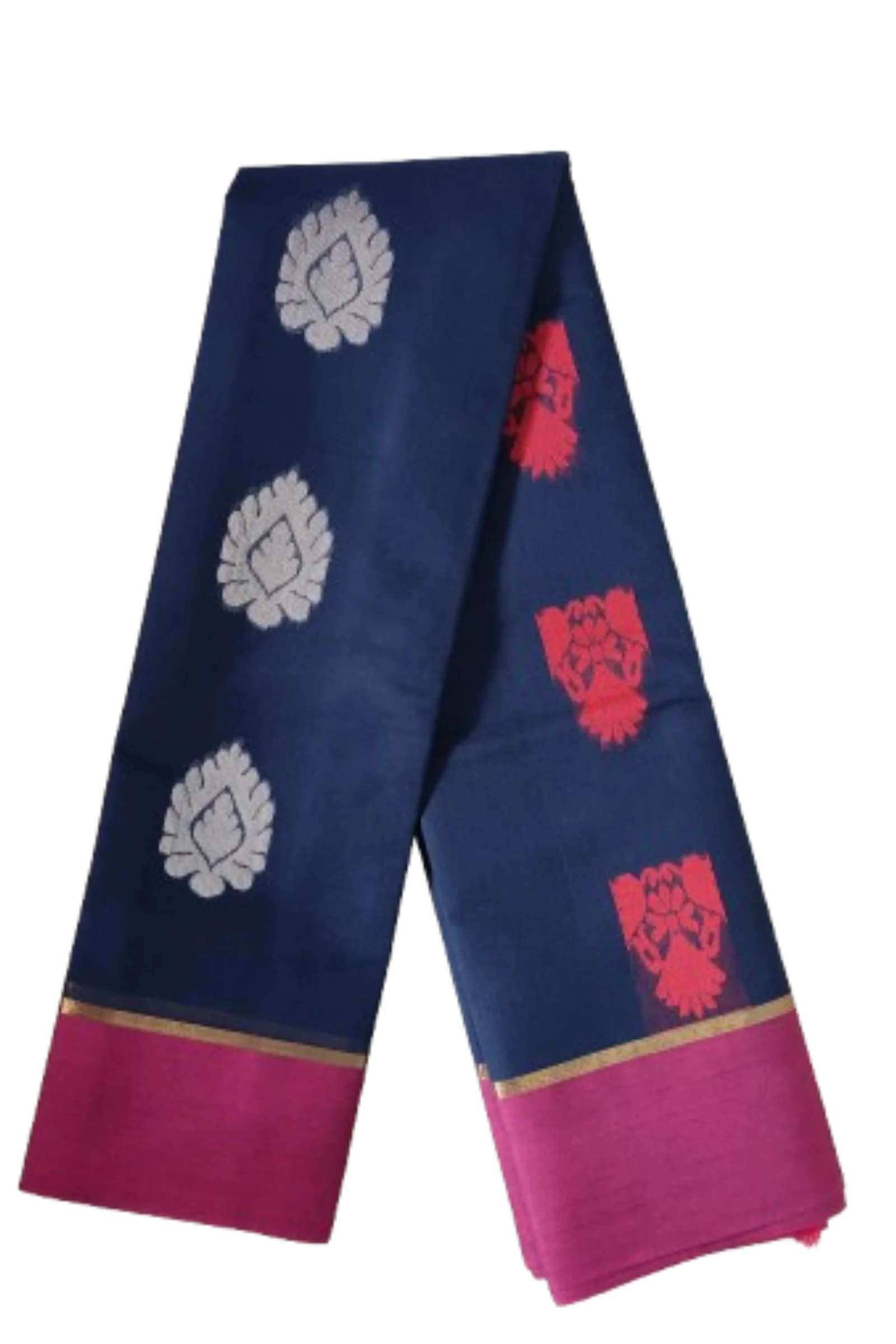 Negamam Cotton Saree With Running Blouse Blue Colour