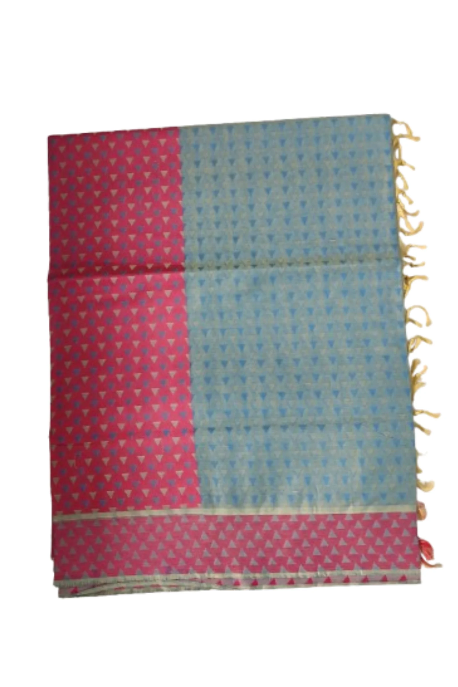 Negamam Cotton Saree With Running Blouse Light Green and Cement Mixed Colour