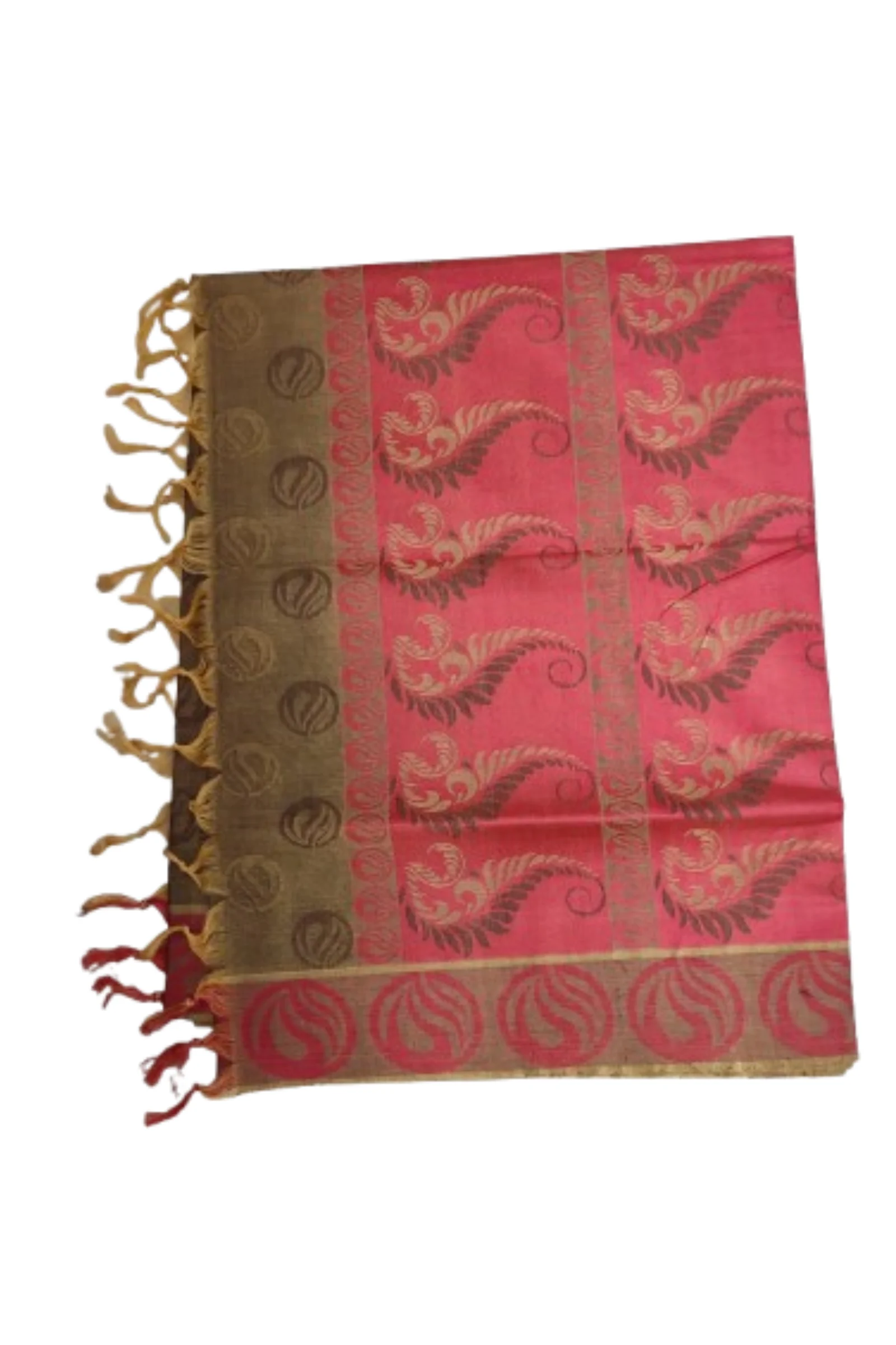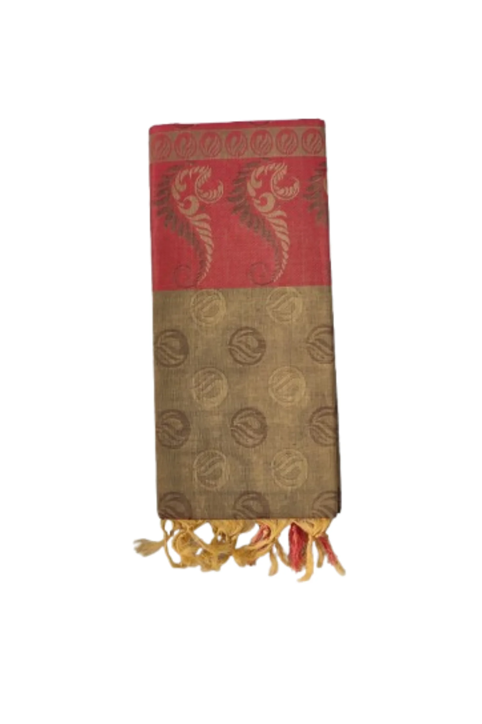 2. Attractive red design pallu: The red-colored design pallu adds a touch of beauty and intricacy to the overall look.
