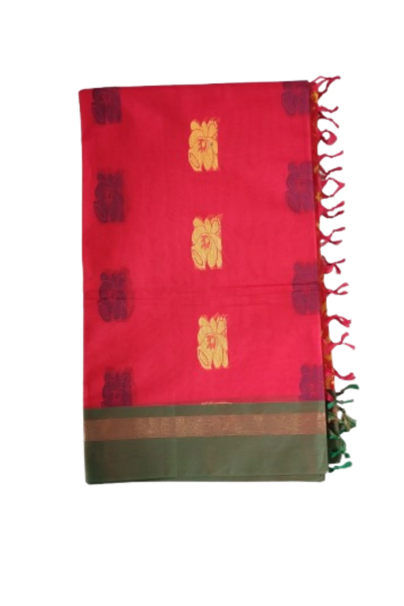 The Negamam cotton saree is a traditional choice for women in Tamil Nadu, and this particular saree is a stunning example of the region’s rich textile heritage. The saree’s vibrant red color, attractive putta design, and kunjaram make it a perfect choice for women who want to celebrate their cultural roots.