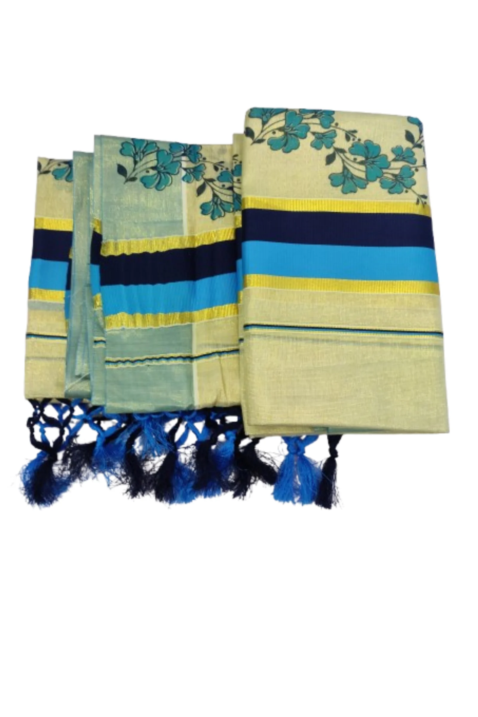Set Mundu Matterial: Tissue Cotton Color: Blue (Border&Kunjaram)